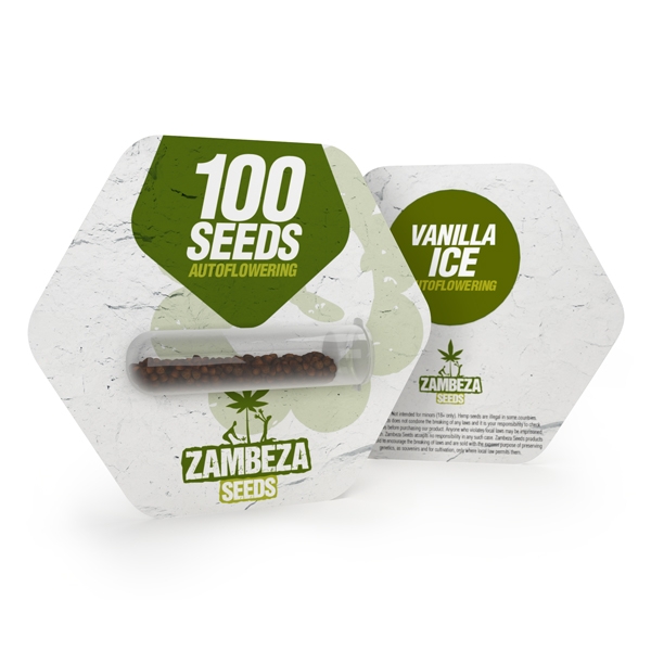 Wenn Du nach einer sehr produktiven Pflanze suchst, die Dich in Rekordzeit mit einem riesigen Berg aus wahnsinnig harzigen Blüten belohnen wird, dann ist Vanilla Ice Auto von Zambeza genau die richtige für Dich. Ihr Geschmack und das High können mit ihrer feminisierten Schwester mithalten. Das macht sie zu einer exzellenten Autoflower, die sicherlich nicht enttäuschen wird! Die Großpackung Vanilla Ice enthält 100 Samen, damit Du Deine Vorräte mit dieser köstlichen und lohnenden autoflowering Sorte auffüllen kannst!